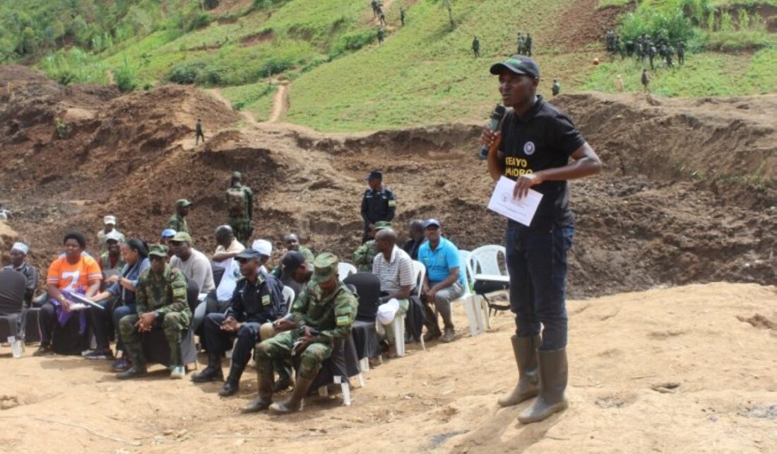 District officials and security officers meet residents for banning illegal mining activities in Gatare Valley in Musanze District on Saturday, May 28.Courtesy...