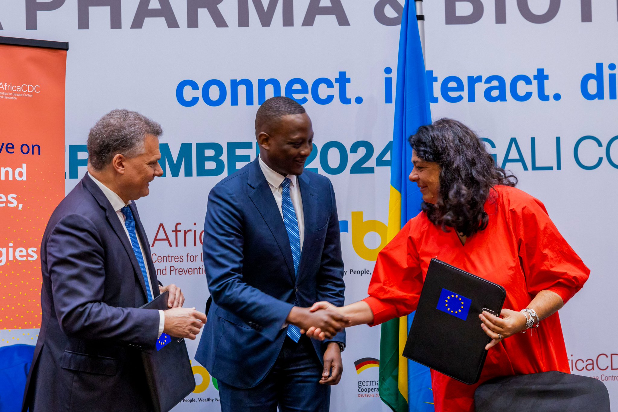 The State Minister of Health, Yvan Butera, emphasized the importance of this investment, stating, “The Government of Rwanda remains committed to building a pharmaceutical manufacturing hub to facilitate access to medical products within Rwanda and across Africa. Today’s signing ceremony signals that developing local pharmaceutical manufacturing capacity and addressing global health imbalances continues to be a priority for the European Union as well”.