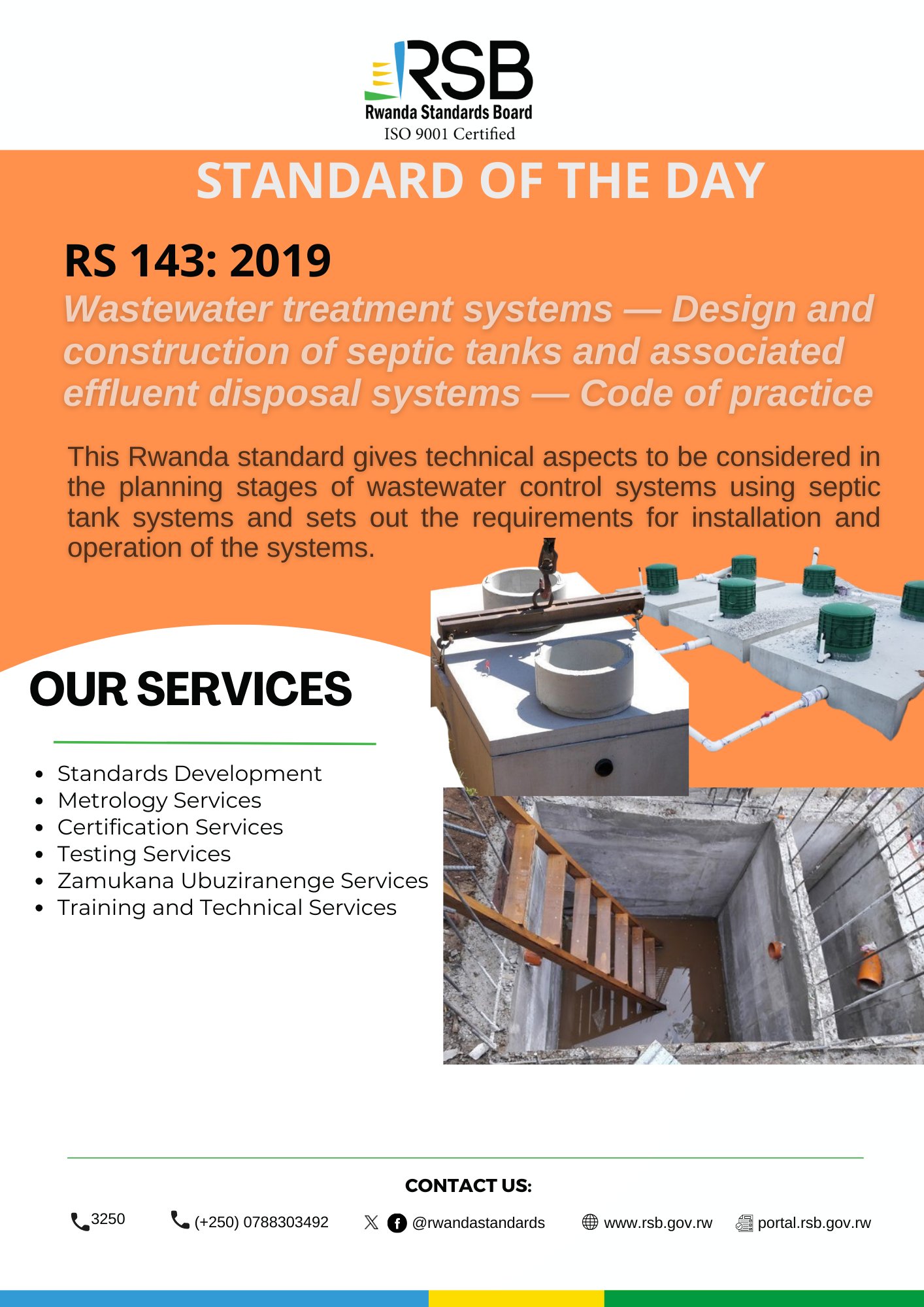 The Rwanda Standards Board (RSB), an ISO 9001-certified institution, has unveiled RS 143: 2019, a pivotal code of practice for designing and constructing septic tanks and effluent disposal systems. This standard provides technical guidance essential for planning wastewater control systems, outlining clear installation and operational requirements.